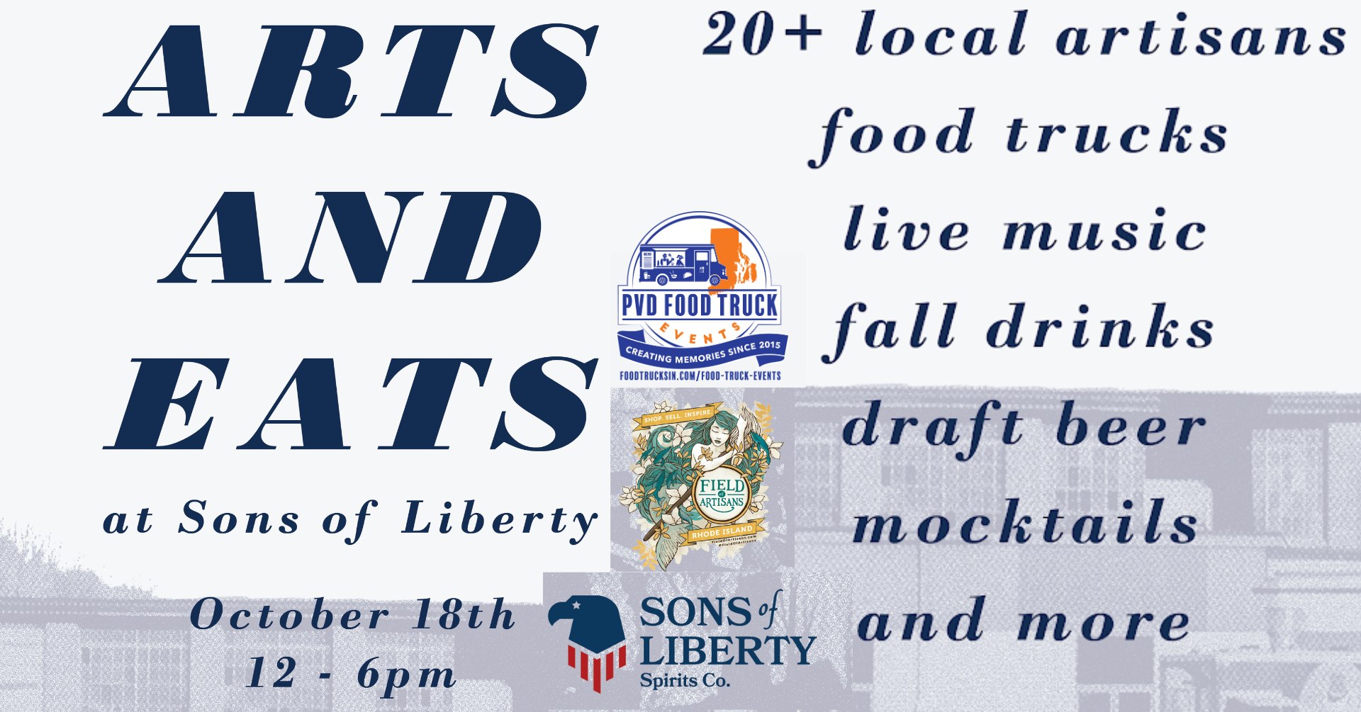 Sons of Liberty, Field of Artisans, and PVD Food Truck Events are teaming up once again for our annual Fall Arts & Eats β a full day of food, music, drinks, shopping, and community fun! πΆποΈπ