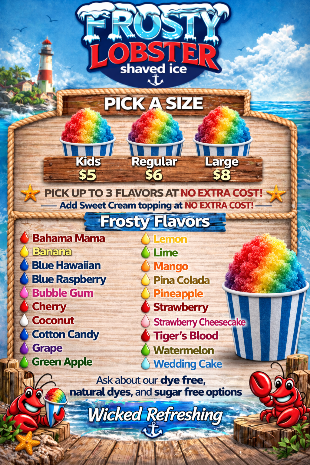 We are a mobile shaved ice and specialty soda trailer.