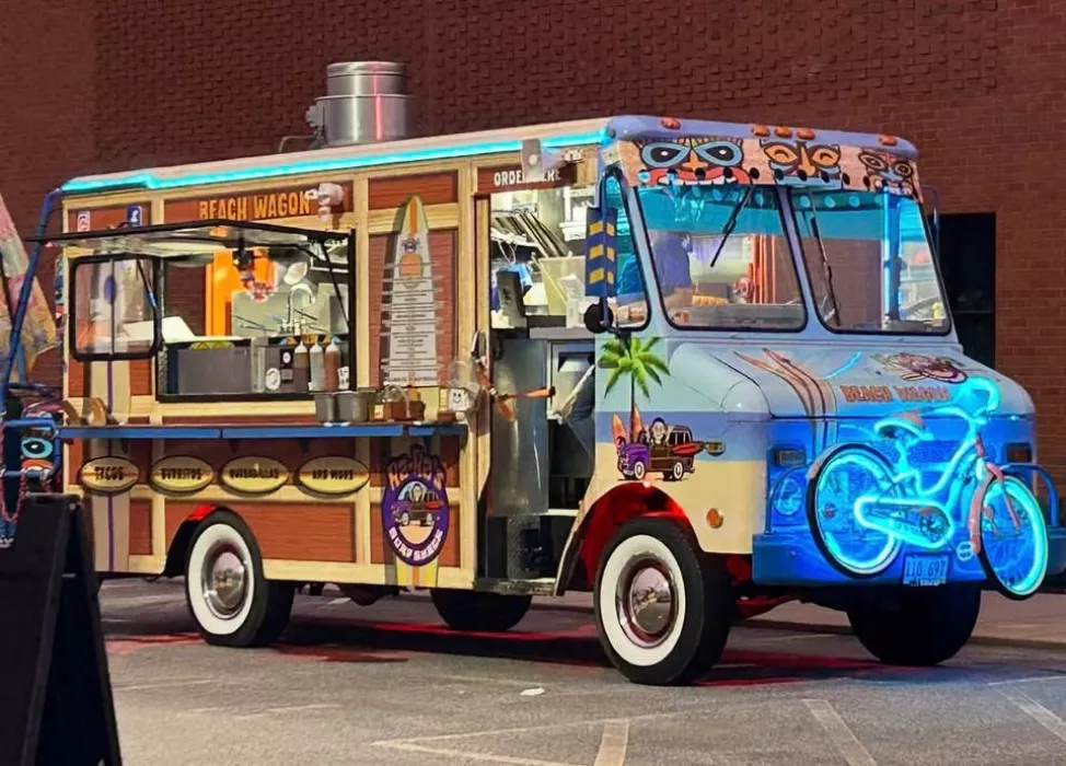 The custom surf shack theme, lighting, and artwork make it a visual centerpiece that draws crowds and customers, making it ideal for high-traffic events and catering opportunities.
