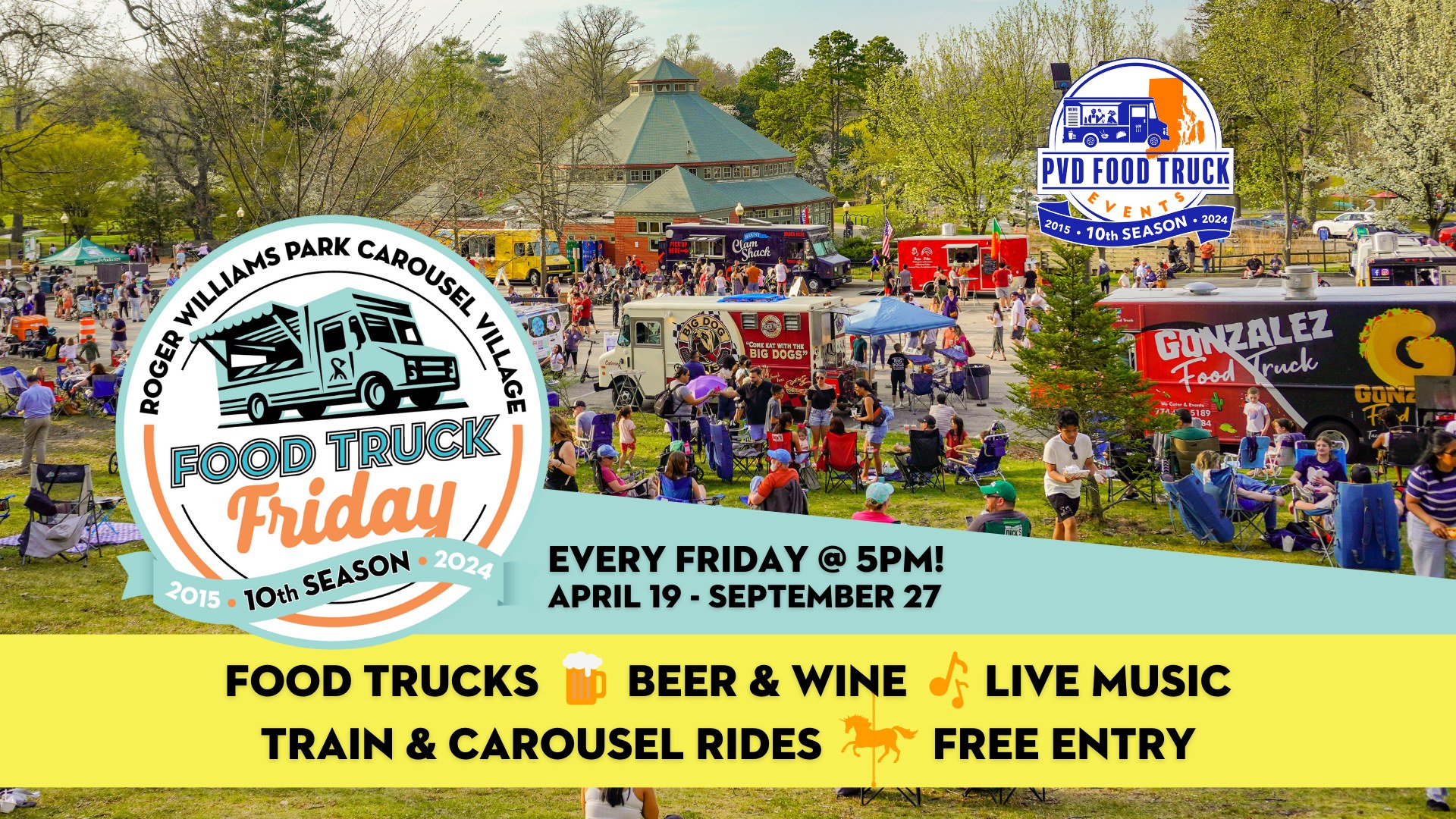 Join us for our very special 10th season of Food Truck Friday #FTF at Carousel Village at Roger Williams Park every Friday from April 19th to September 27th.
