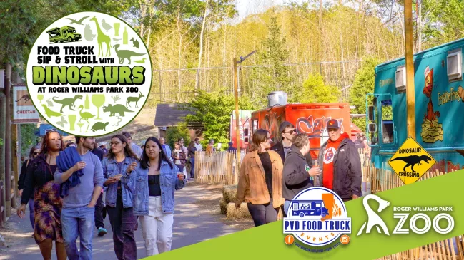 Don't miss out on the Zoo's final Sip & Stroll with Food Trucks and Dinos event! On July 12, in partnership with PVD Food Truck Events, we're bringing you an unforgettable evening with DINOS.